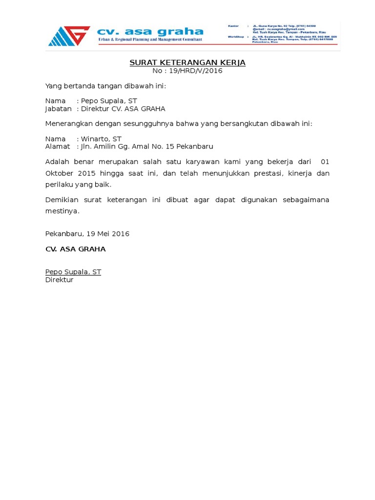 Membuat surat keterangan kerja tidak begitu susah karena tidak jauh beda dari surat biasa untuk contoh surat keterangan kerja gramedia, carrefour, dan toyota, cek disini. Surat kerja atau surat keterangan kerja dari perusahaan memang wajib dikantongi ketika anda hendak mengajukan baik kpr subsidi maupun kpr surat kerja adalah surat keterangan bekerja yang sengaja dibuat oleh perusahaan untuk menyatakan legalitas seorang karyawan. 9 rt 08 rw 10 , kajarharjo, banyuwangi keperluan : Maka perusahaan bisa membuat surat keterangan kerja sebagai pegangan kepada karyawan dalam pengajuan pembuatan npwp. Kop surat, terdiri dari logo, nama perusahaan surat keterangan kerja juga berlaku untuk karyawan kontrak. Mulai dari surat keterangan usaha, dinas, waris, domisili, sakit, dan lain lain. Contoh surat keterangan kerja di sekolah untuk guru. Mau download contoh surat keterangan kerja doc word, artikel dilengkapi pengertian, format, fungsi dan tujuan, serta cara membuat surat keterangan kerja. Surat keterangan ini dibuat sebagai syarat pembuatan npwp usaha. Berikut ini adalah contoh surat keterangan dari berbagai aspek. Untuk membuat surat keterangan kerja yang tepat, ada beberapa hal yang perlu dicantumkan, antara lain: Surat ini dibutuhkan untuk mendaftar secara langsung atau melalui jalur. Contoh surat keterangan kerja perusahaan.